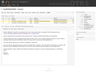 Emails sent to VRTS are handled by a multilingual team of trusted volunteers. Each topic is assigned a unique ticket number to keep related emails together and to ensure that correspondence can be found and re-examined at a later date. The correspondence is not visible to the public.